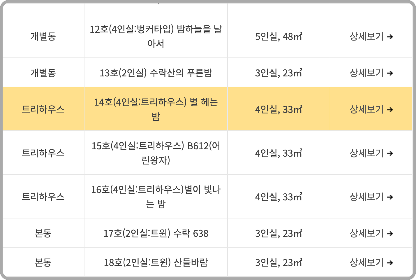 - 인기 객실: 트리하우스는 조기 마감 가능성 높음, 예약 시간 엄수
