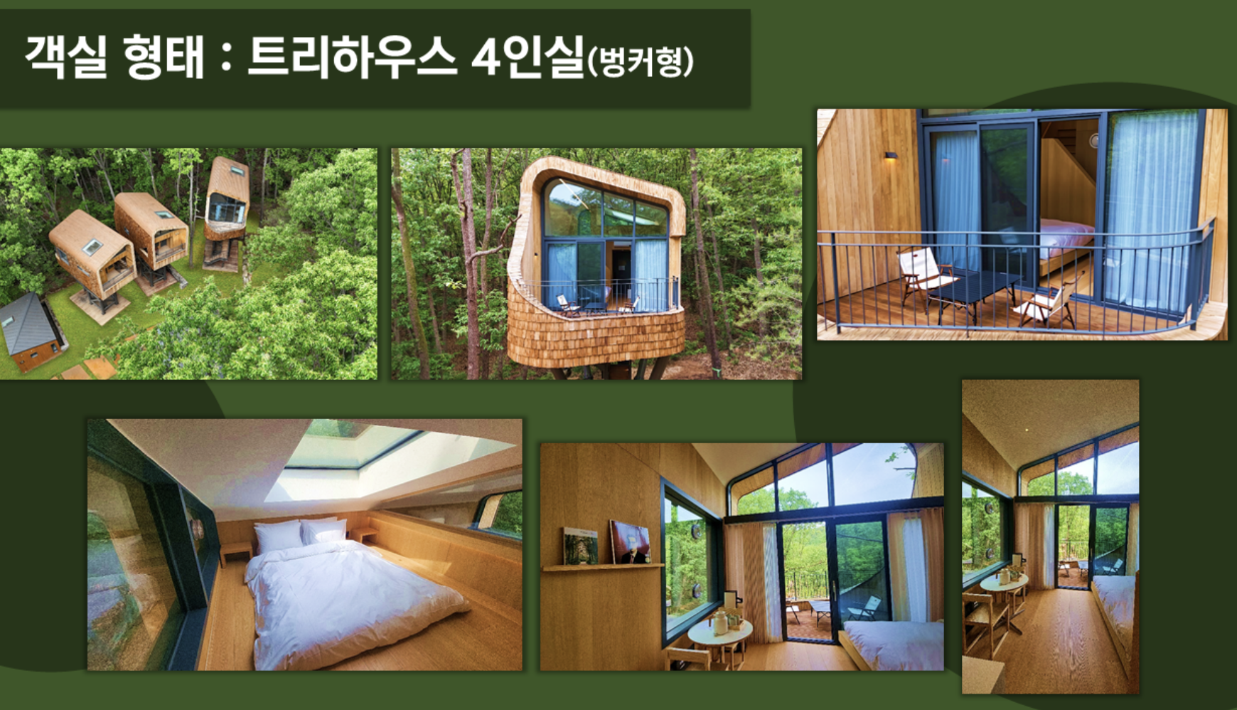 - 트리하우스 4인실 (10평): 성수기 250,000원 / 비수기 200,000원