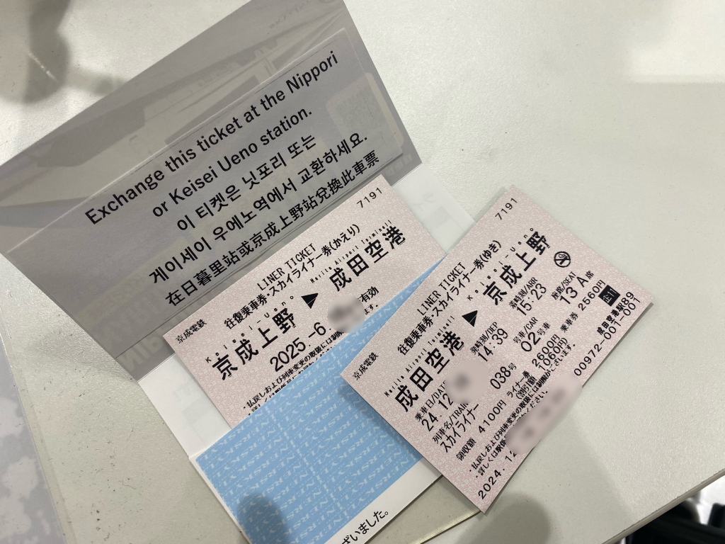 먼저 종이티켓을 1장 받게 되고요, 귀국할 때 사용할 교환권 1매를 받습니다. 돌아올 때, 게이세이 우에노역에서 스카이라이너 나리타공항행으로 교환해야하니까, 잃어버리지 않게 잘 보관하셔야 합니다.