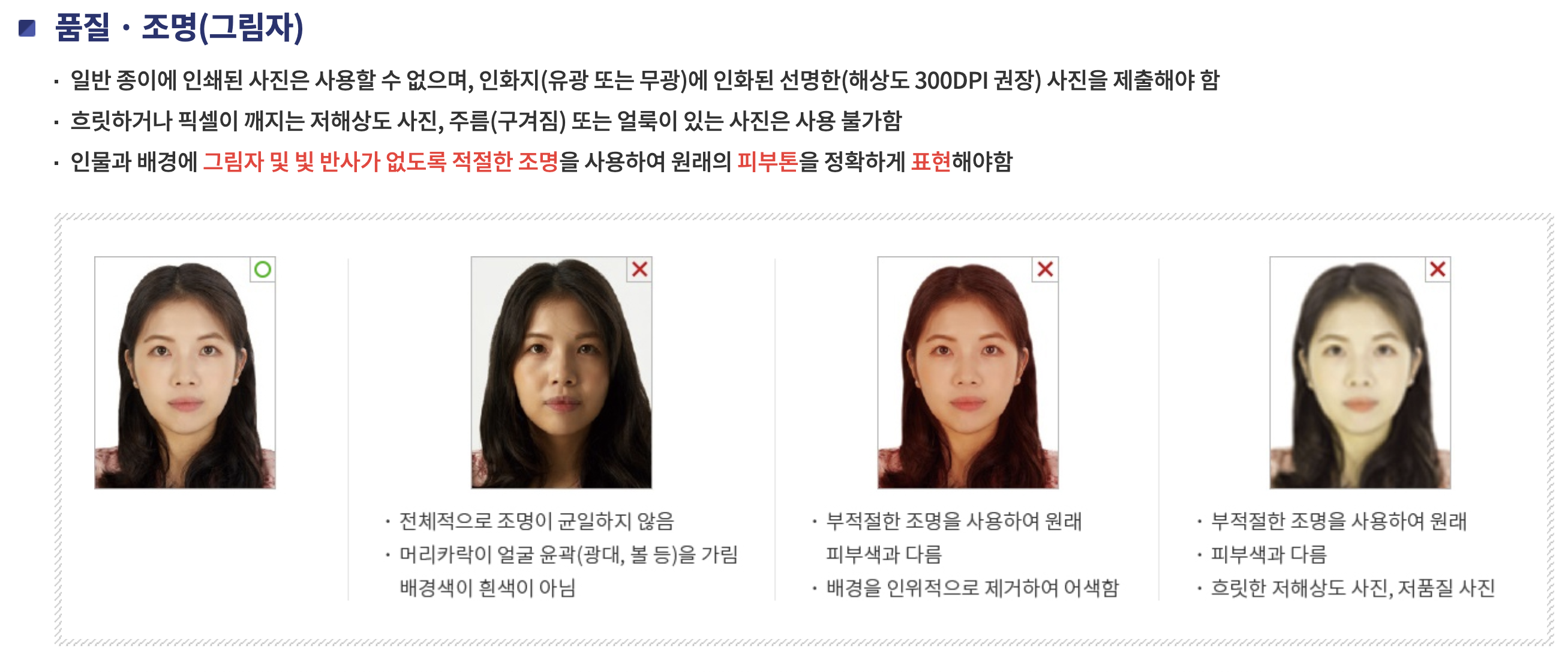 절대 포토샵, AI, 필터 보정 등을 사용하면 안 돼요. 배경을 지운다거나 얼굴형을 조금이라도 수정하면 접수 거부될 수 있어요.